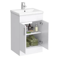 Toreno Basin Unit – 500mm Modern High Gloss White with Mid Edged Basin