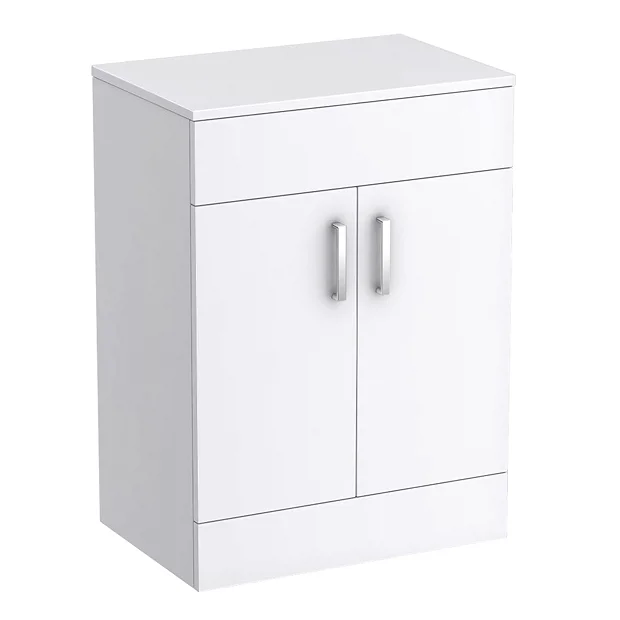 Toreno 605mm High Gloss White Worktop & Double Door Floor Standing Cabinet (Excludes Basin)